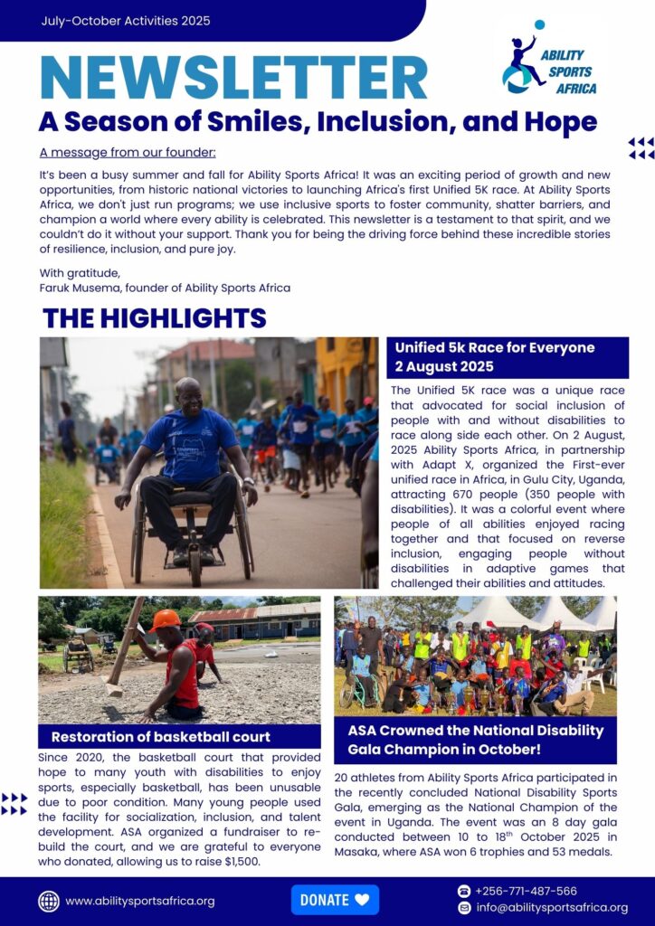 In 2025 November ASA launched the first ever professional athletic club for persons with disabilities in Gulu.